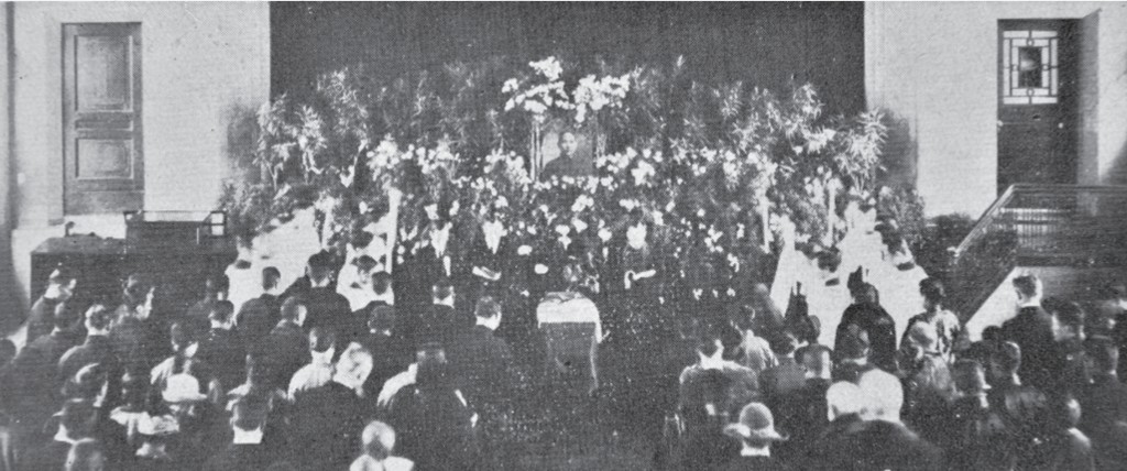 [1925年3月19日北京协和医院礼堂孙中山基督教追思礼拜现场。来源:《教务杂志》(The Chinese Recorder),第62卷,1931年。]